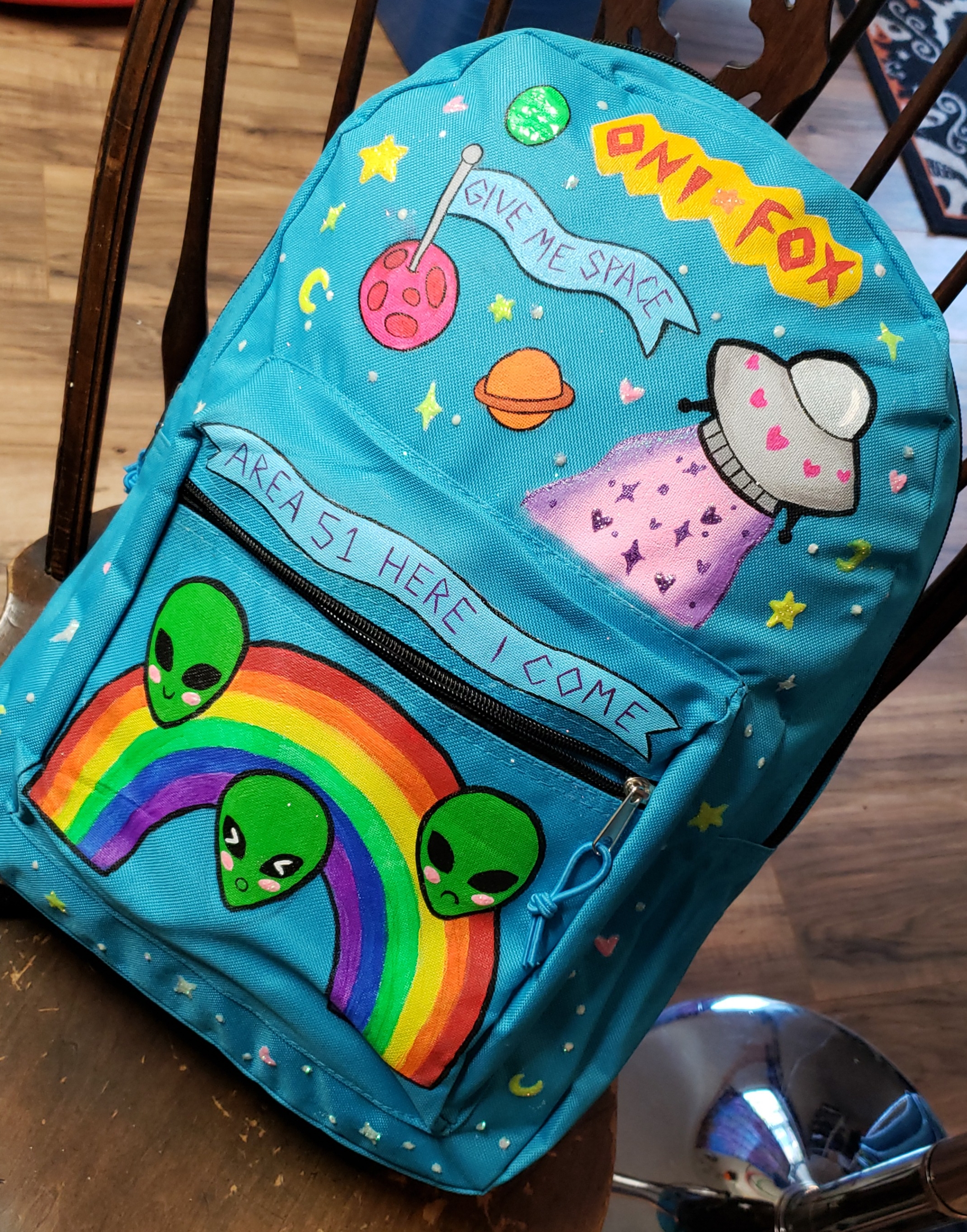 OOAK Backpack painted my me, Lauren Noelle (@oni.fox + @noelletattoos)